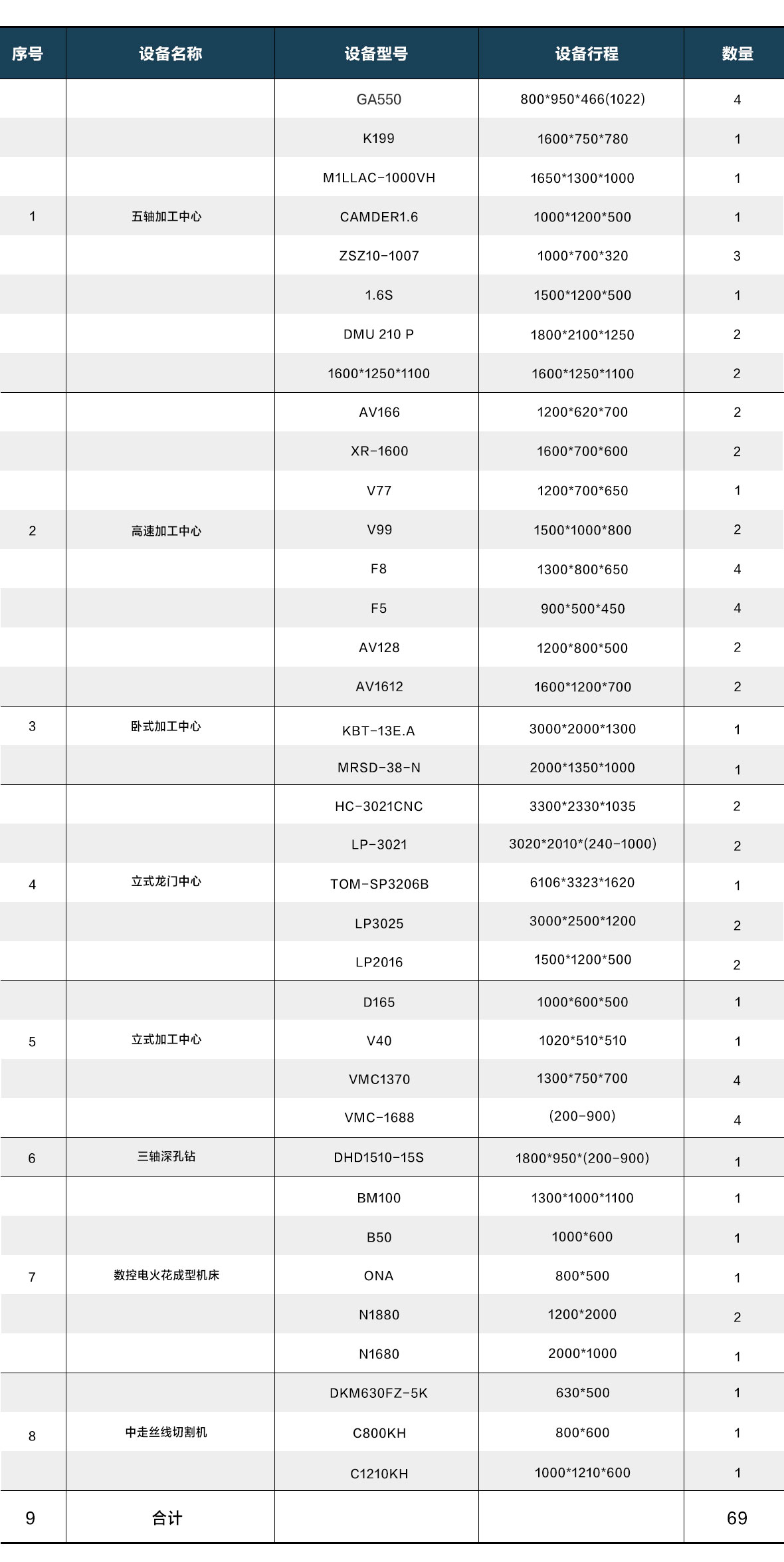 加工設備清單